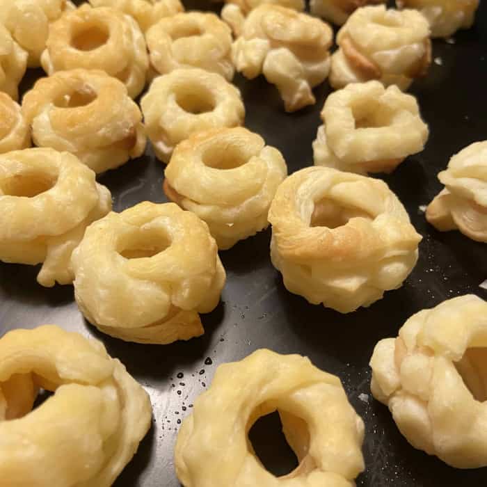 - Der Backanleitung des Blätterteigs für Kleingebäck folgen.