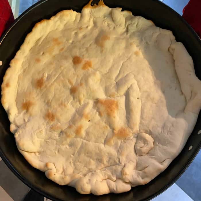 - Der Pizzaboden muss ausgerollt, gezogen oder vorsichtig gezerrt werden, bis er Form oder Blech bedeckt.