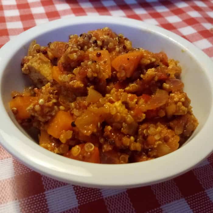 Das Rezept profitiert davon, wenn man sich die Mühe macht, alles schön klein zu hacken und zu schneiden. Die Quinoa sorgt dafür, dass es sich auch im Mund authentisch anfühlt, Tofu sorgt fürs Eiweiß und Gemüse kannst du natürlich noch nach Belieben ergänzen: Mit Mais und Bohnen wird ein Chili daraus, mit Feta oder veganem Feta ein großartiger Salat.