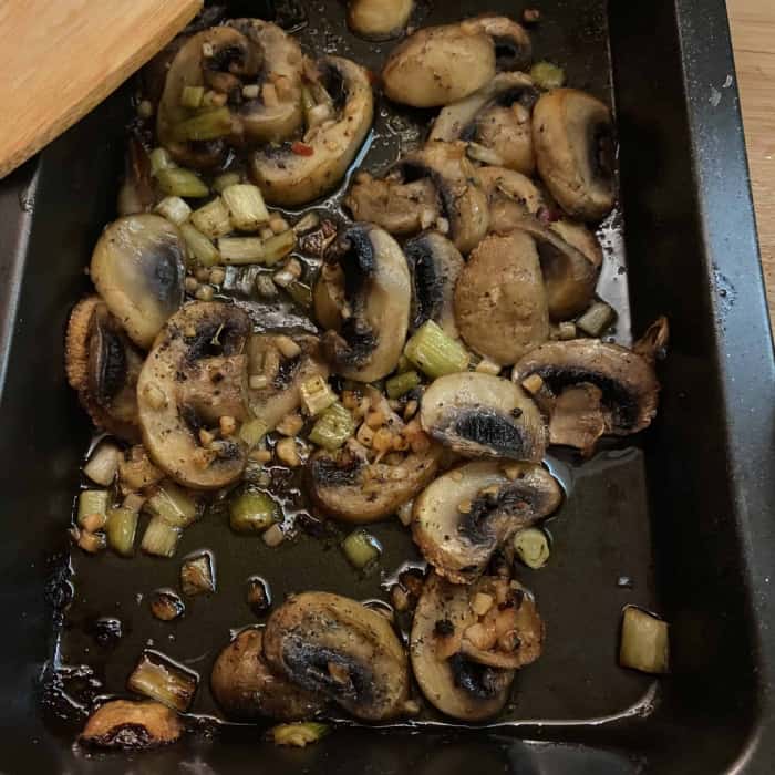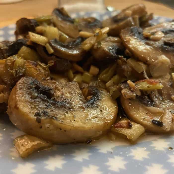 Wie durchgeschmurgelt du die Champignons haben möchtest, weißt du selbst am besten. Eine ganze Packung ergibt erstaunlich wenig Vorspeise, wenn du das für Gäste zubereitest, nimmst du am besten gleich zwei.