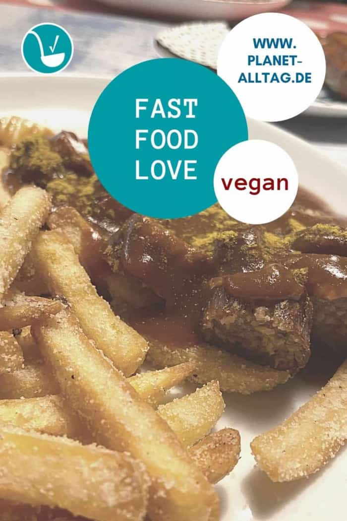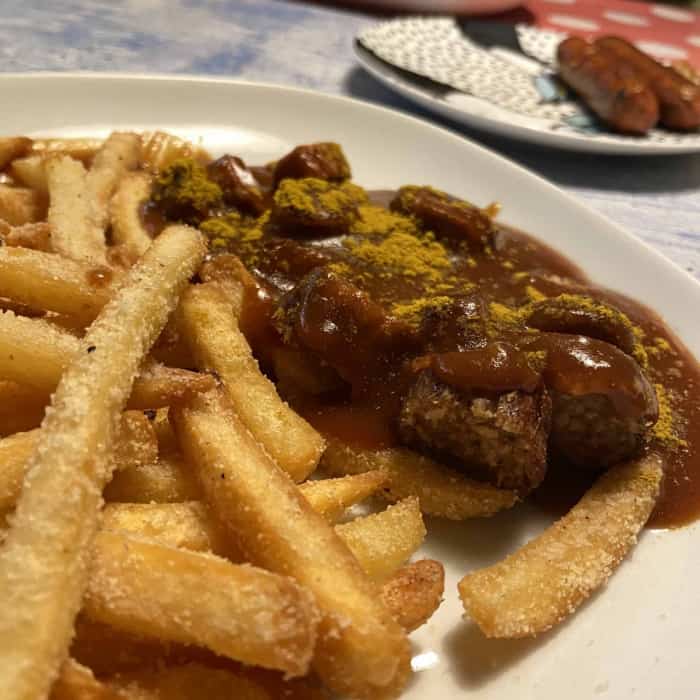 Vielleicht ist es also kein Wunder, dass ich irgendwann doch Lust darauf hatte. Nicht so sehr auf die vegane Wurst, bisher habe ich noch kein Ersatzprodukt gefunden, das mich so richtig happy macht. Aber die scharf-fruchtige Sauce und dazu dann knusprige Pommes.