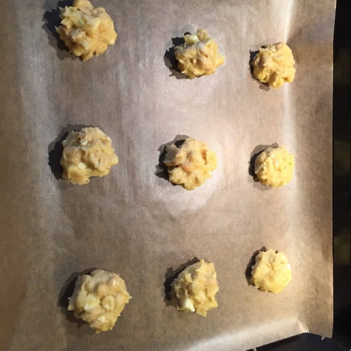 Mit der Pflanzenmilch (alles außer Kokos, schätze ich) kann man bestimmen, wie feucht der Teig ist. Ich finde ihn am besten, wenn man mit dem Eisportionierer Kugeln setzen kann, die nicht sofort zerfließen.
