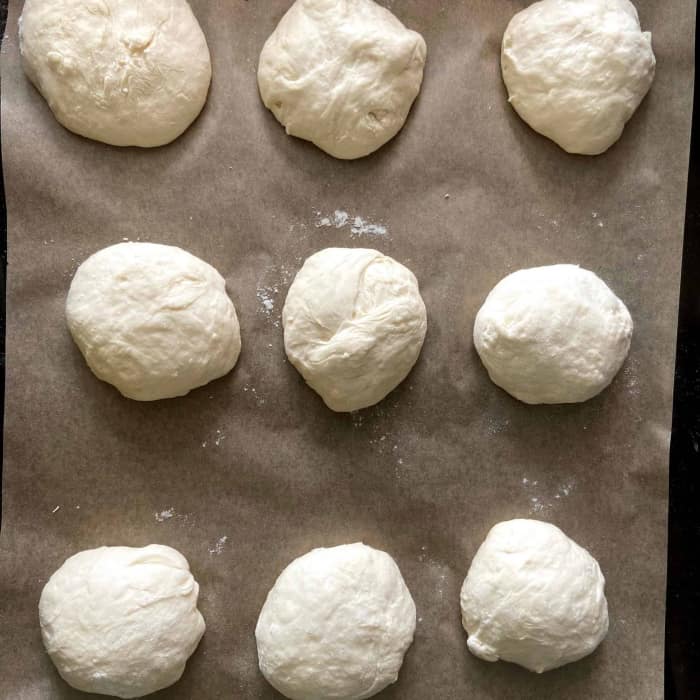 - Locker je eine Semmel formen, Kanten und Ecken unten drunter klappen, leicht bemehlen