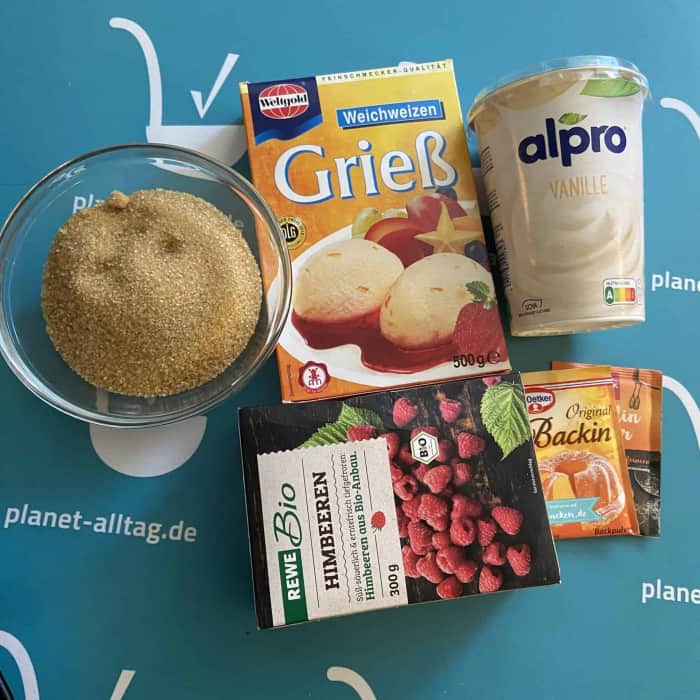 - Grieß und Backpulver vermengen und beiseite stellen.