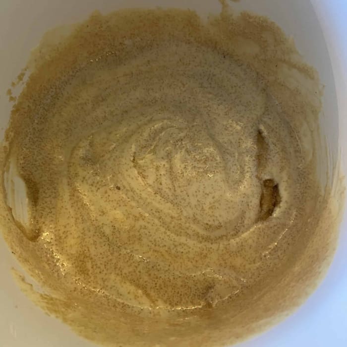 - Das Joghurt mit dem Zucker und Vanillezucker verrühren, dann auch mit der Margarine.