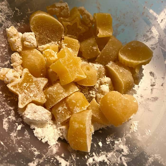 Die in Puderzucker und Speisestärke ganz zart gehüllten wurden nach zwei Stunden im Ofen bei 80 Grad ein bisschen robuster. Aber nicht so, dass es sich gelohnt hätte oder eine “haltbare Dauerware” entstand. Wir bleiben dran 😊