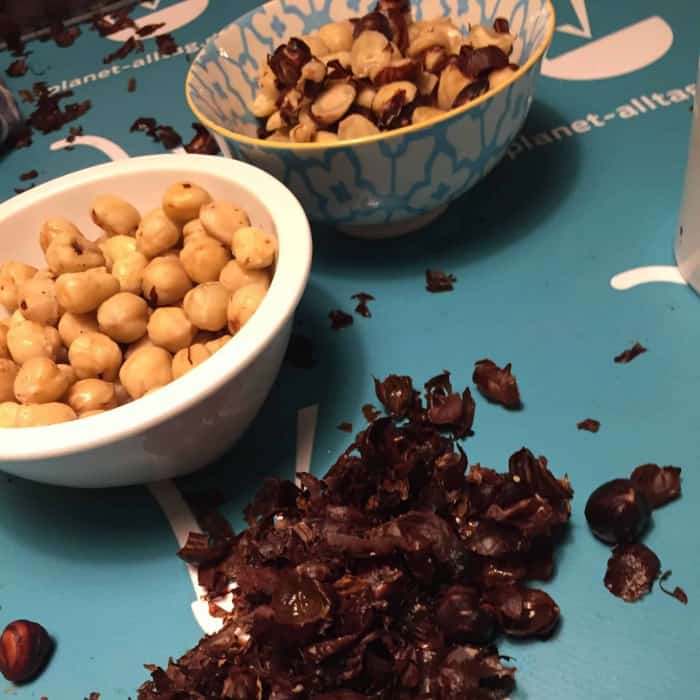 Ich will nicht lügen, das war eine elende Fummelei. Der Bonus: Die nicht so gelungenen Haselnüsse habe ich in einem eigenen Schälchen gesammelt, inklusive der Schalenreste, und später knusprig karamelisiert aufs Müsli gegeben - sehr lecker.