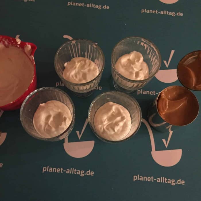 - Kalt stellen, vor dem Servieren ggf mit dunklem Kakao bestäuben