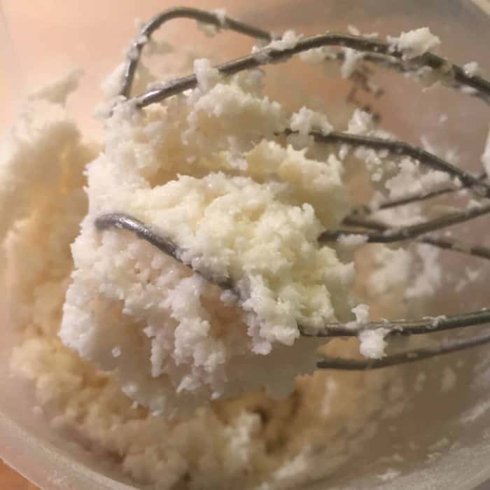 - Die Kokosflocken mit untermischen, bis man einen dicken glatten Kokosbrei hat.
