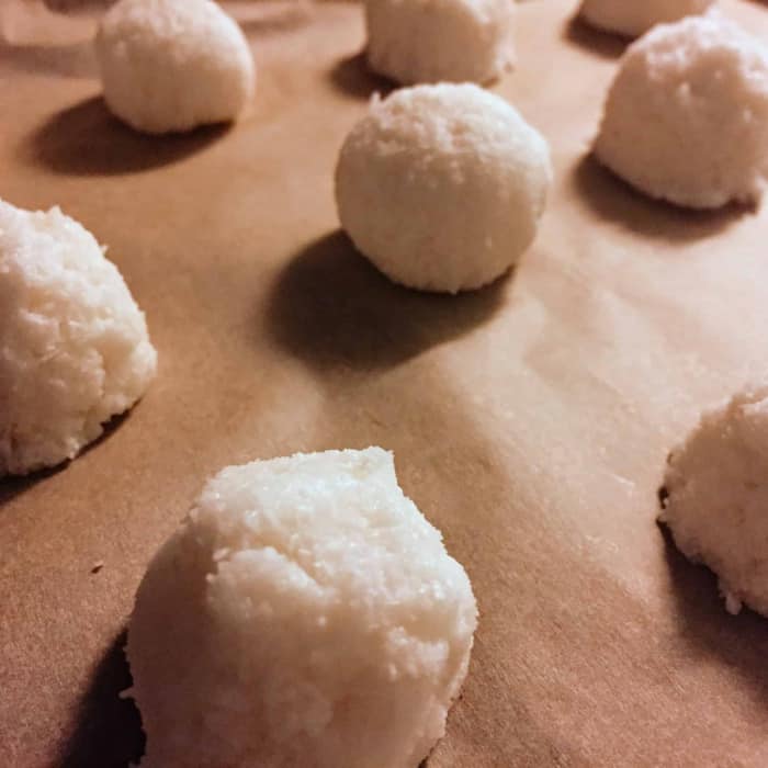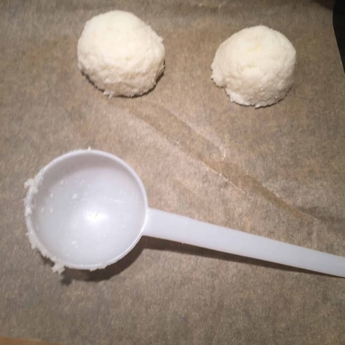- MIt zwei Löffeln oder einem Eisportionierer Häufchen aufs Blech setzen