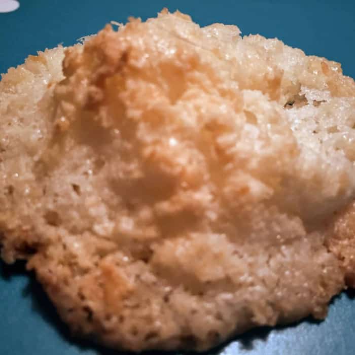 Beim ersten Durchlauf war ich zu ungeduldig und habe die Makronen in den zu heißen Ofen geschoben. Sie waren köstlich, sind aber zu karamelligen kleinen Fladen verlaufen. Das ist nicht schlimm, war aber nicht der Plan.