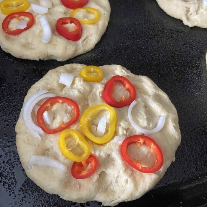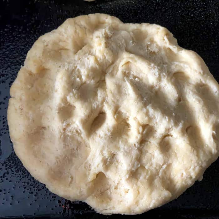 - Dann drei bis vier runde Fladen oder längliche Brote formen.