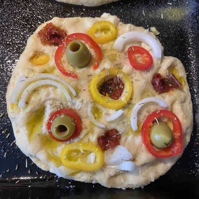 Party-Focaccia mit Paprika und Oliven: Was noch?