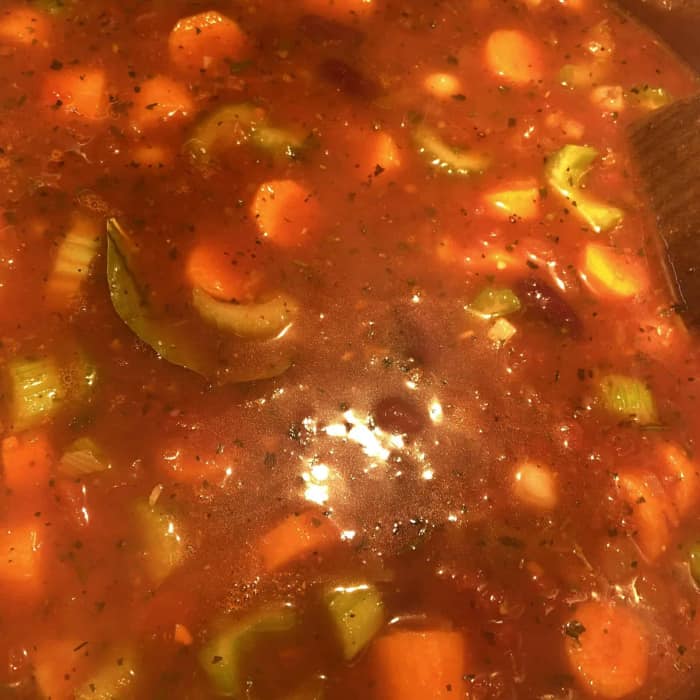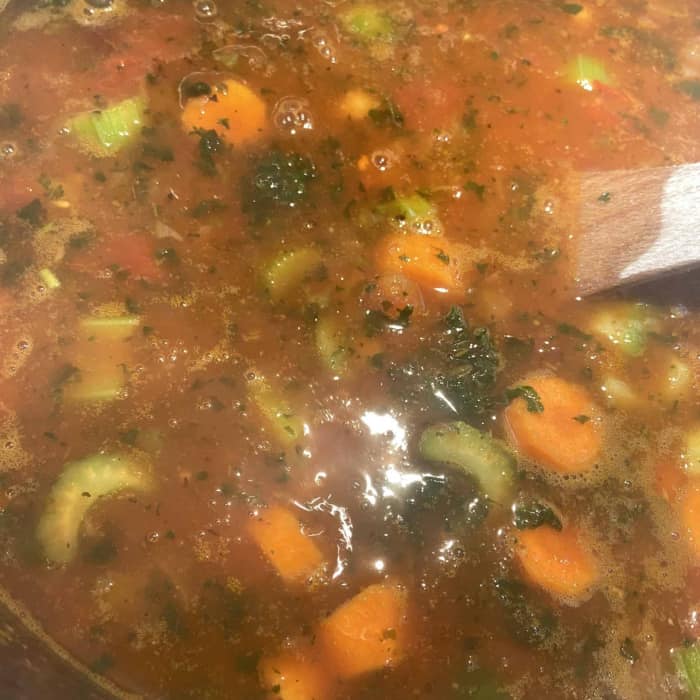 - Sollte die Minestrone zu dickflüssig sein, weitere Gemüsebrühe ergänzen.