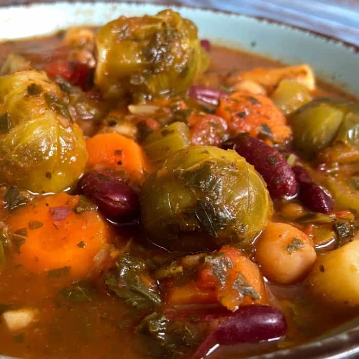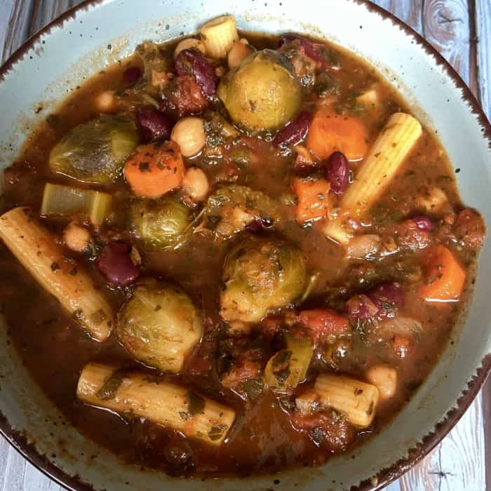 Rosenkohl rockt, auch in unserer Rosenkohl-Minestrone mit tonnenweise anderem Gemüse und reichlich Protein.