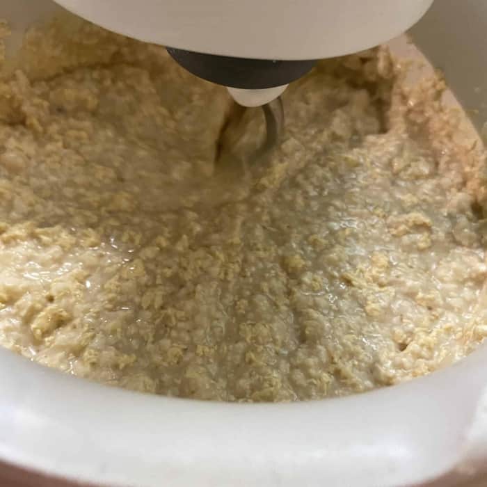 - In eine große Rührschüssel umfüllen und mit einem Mixer den Seidentofu untermischen.