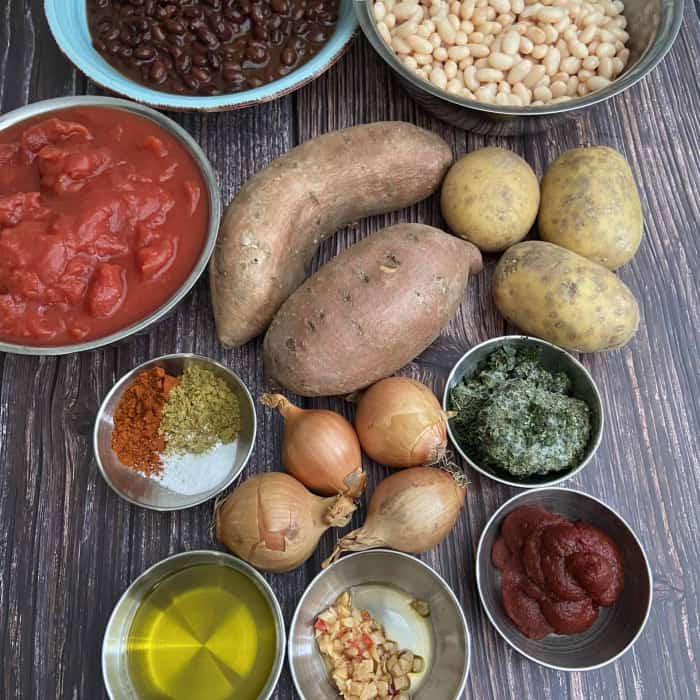 Unser Kind mag aktuell keine Süßkartoffeln und keine scharfen Speisen. Da wir mit kleinen Auflaufformen pro Person backen und nicht mit einer großen, war es aber fast aufwandlos möglich, mit normalen Kartoffeln und weißen Bohnen eine weitere Portion zu machen.