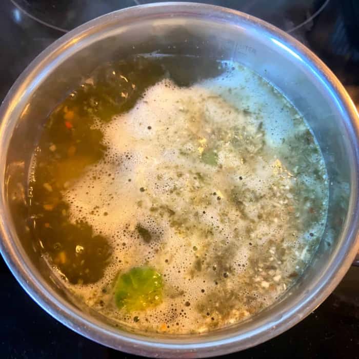 - Rosenkohlröschen etwa 10 min in Gemüsebrühe dünsten.