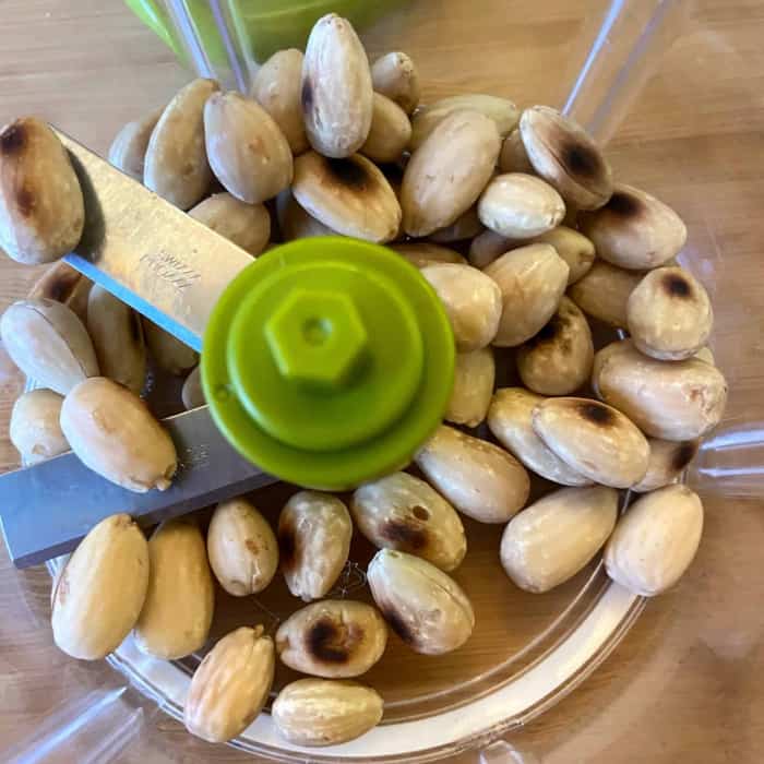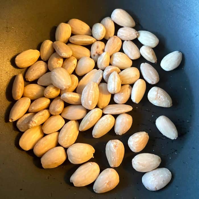 - Die Walnüsser oder blanchierte Mandeln in einer Pfanne kurz ohne Öl knackig rösten. Darauf achten, dass sie nicht zu dunkel werden.