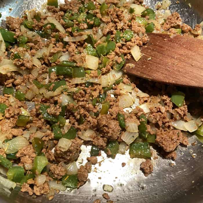 - Darauf achten, ob das Hack am Pfannenboden braun anzupappen beginnt, das soll es nämlich.