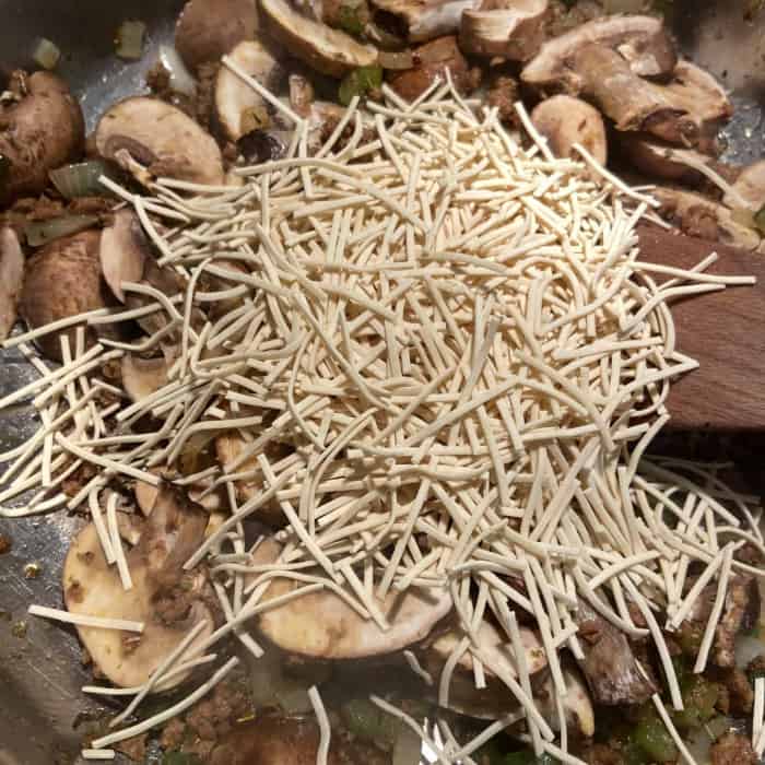 - Die ganze Packung Mie-Nudeln nehmen (250 Gramm, auf vegane Variant achten)