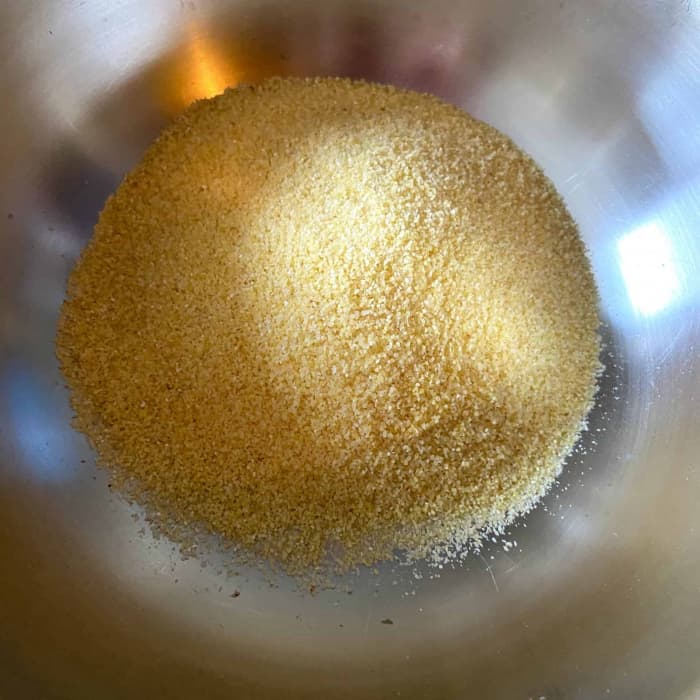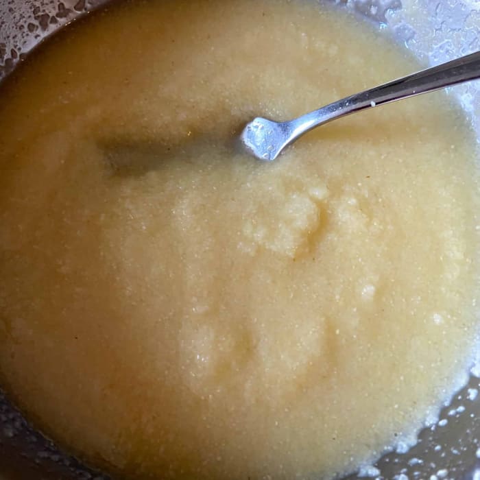 - In einer Schüssel den Grieß mit dem kochenden Wasser übergießen und verrühren.