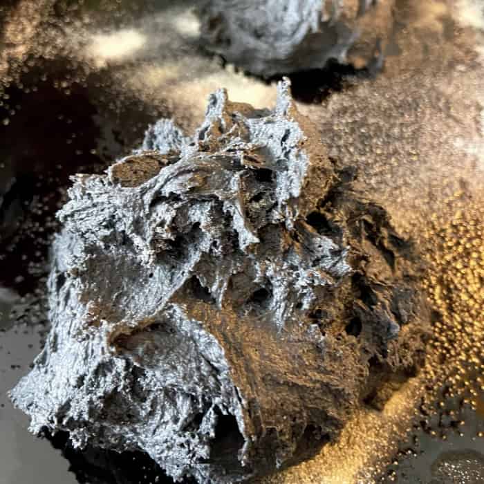 Diese schwarze Focaccia steht nicht im Buch, die ist uns nachträglich erst eingefallen. Es wird für diesen Teig kein zusätzliches Wasser benötigt - zuerst mag der Teig in der Küchenmaschine sehr krümelig aussehen, dann bitte einfach weiterkneten, am Ende kommt ein glatter schwerer Teigbatzen heraus, der dann eine Stunde lang an einem halbwegs warmen Ort geht.