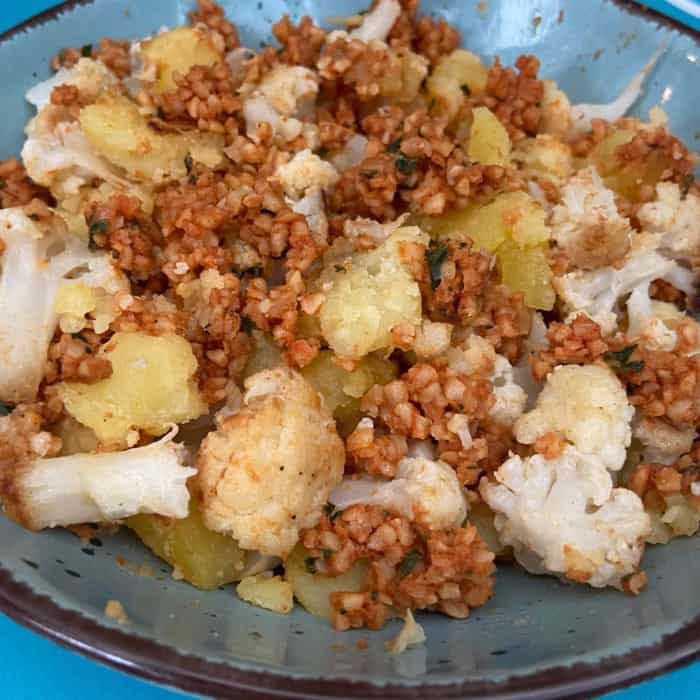 Wir hatten ca 400 Gramm Cig Köfte “Teig”, ein Pfund gekochte Kartoffeln und einen halben ofengegarten Blumenkohl.