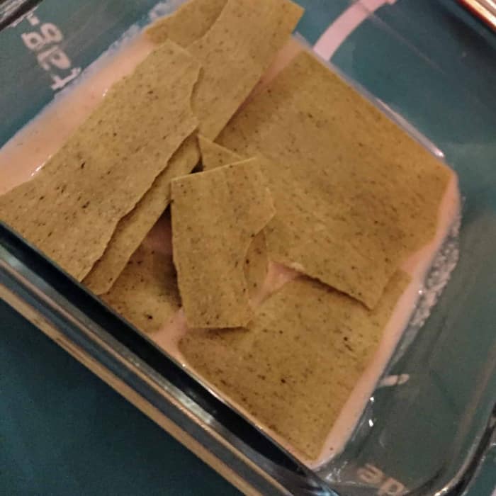 - Auf die oberste Schicht kommen die Tomatenscheibchen, die mit der restlichen Soße begossen werden.