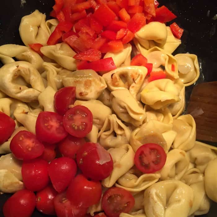 Dieses Rezept habe ich mir ausgedacht, als ich ein Date bekochen wollte. Die Tortellini waren köstlich, die Köchin hatte etwas zu viel Rotwein erwischt und war vermutlich unangemessen niedlich für ihr Alter. Seitdem haben viele Freunde es nachgekocht und dsa freut mich, erstaunt mich aber nicht: Geht doch wirklcih schnell und ist sehr schmackhaft.