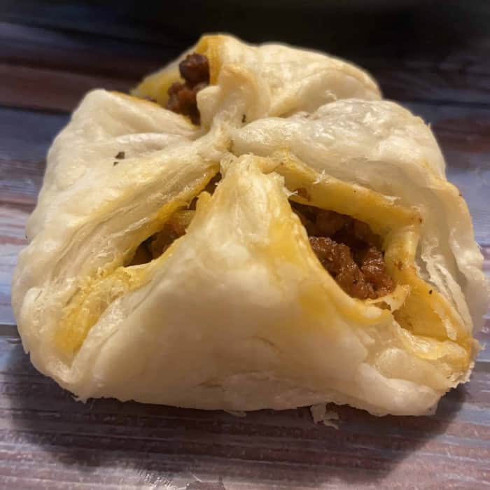 Im ersten Anlauf wollte ich Hackfleischtäschchen machen, und zwar gleich so viele, dass sie für den nächsten Tag als Pausensnack mitgenommen werden können. Nun ist eine Packung Blätterteig für drei bis vier Personen nicht so viel, wie man vorher immer denkt und ob es so ausgeht, wie ich es mir überlegt habe, steht zum Zeitpunkt des Rezeptaufschreibens noch in den Sternen: