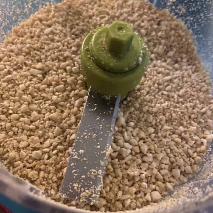 - Alles wird bis fast zur Pulverform (oder bis zu ihr) zusammen kleingehäckselt. Fertig, eintuppern.