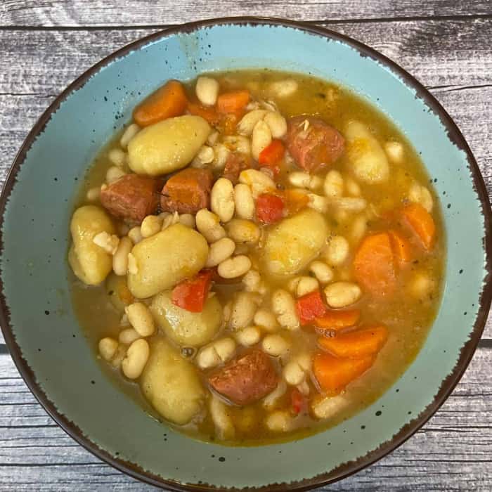 Eintopf mit weißen Bohnen liebt man oder hasst man, die meisten lieben ihn aber - wenn er gut gemacht ist. Es hat mich eine Weile gekostet, bis ich den Dreh raushatte und meine Eintöpfe so gekocht habe, dass sie für zwei Tage beziehungsweise Mahlzeiten reichten, nicht aber für fünf oder mehr. Ich bin nämlich kein Fan davon, Reste einzufrieren.